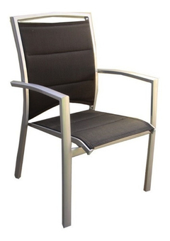 Sillón de aluminio con tela textilene acolchada.